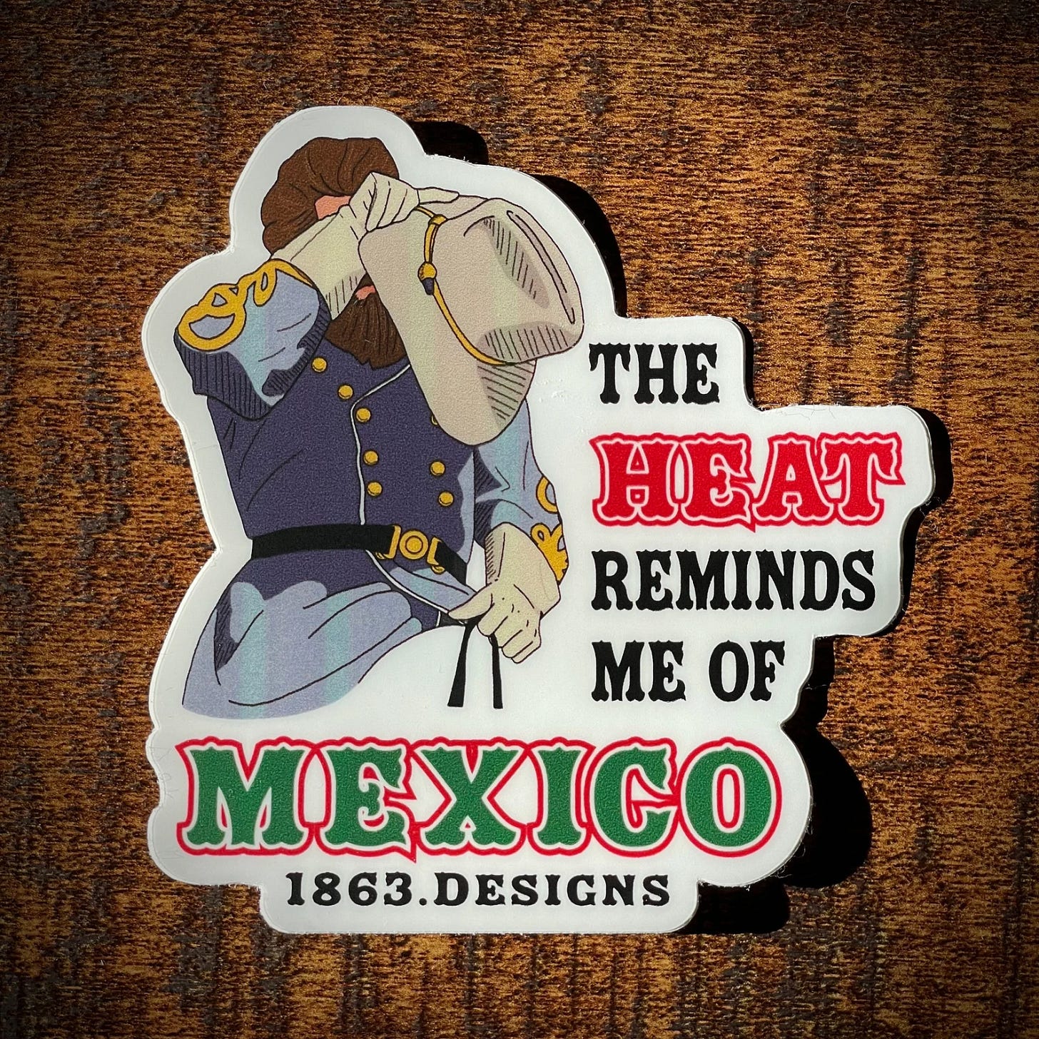 “The Heat Reminds Me Of Mexico Sticker.” One of the most quotable lines from the epic film Gettysburg, this sticker is well produced and a fun addition to your back-glass or water bottle. Again, from another Etsy seller.