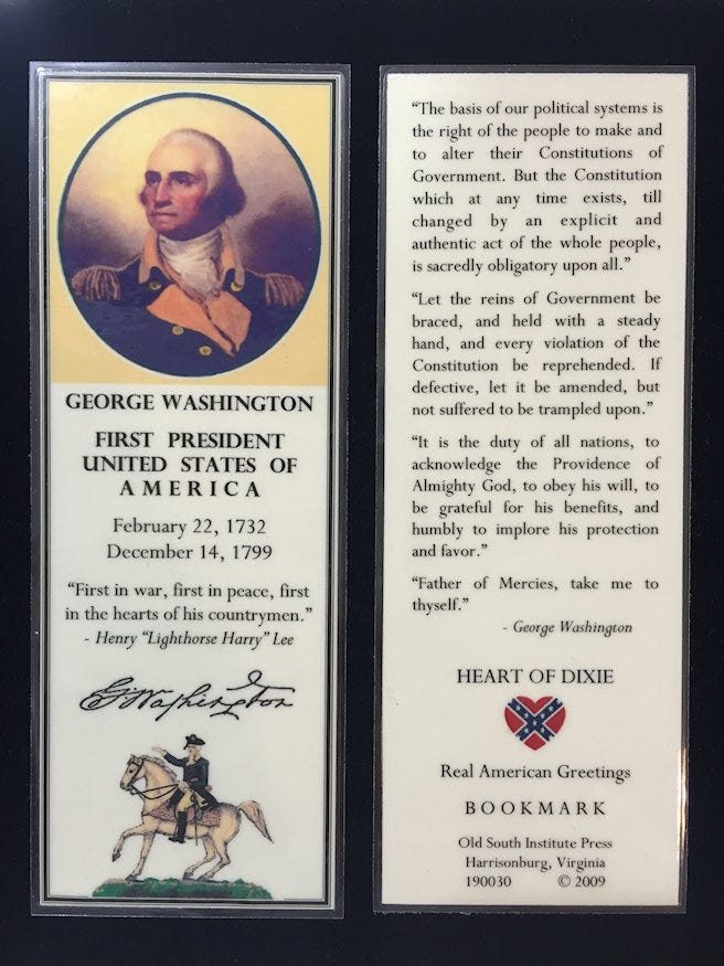 Bookmarks. The final Confederateshop.com listing, is the extensive collection of historical bookmarks produced by Old South Institute Press out of Harrisonburg, Virginia. With over 100 options to choose from, I am sure you can find a suitable bookmark for whatever you are reading. Here is one of my personal favorites, the “George Washington Bookmark.”